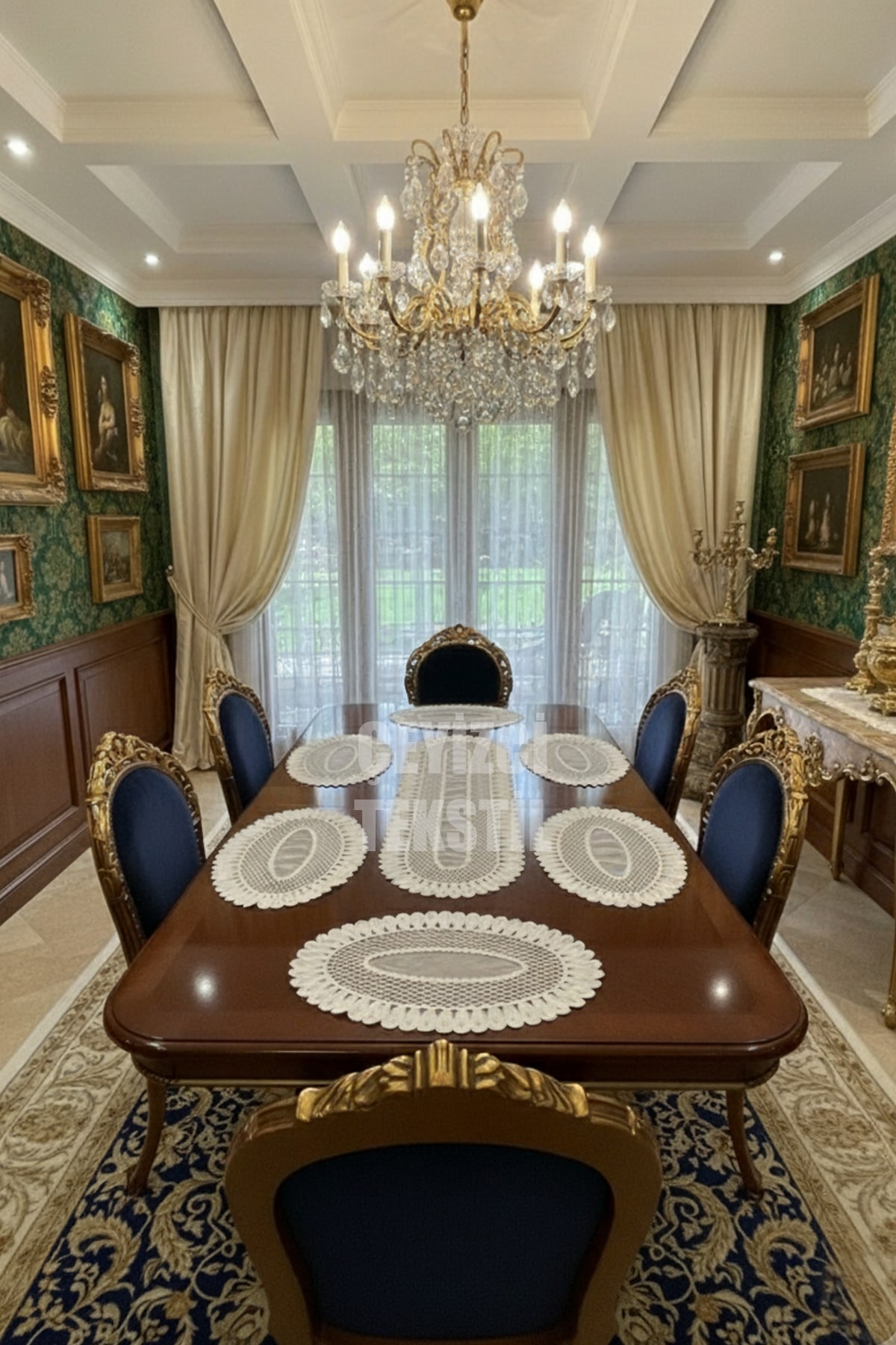 Amerikan Servis, 1 Runner 6 Supla Yemek Servis Takımı, Masa Örtüsü Seti, Servis Sunum Seti