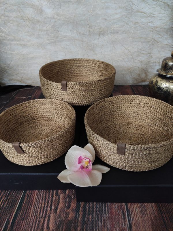 3lü Çok Amaçlı Hasır Sepet – Kahverengi