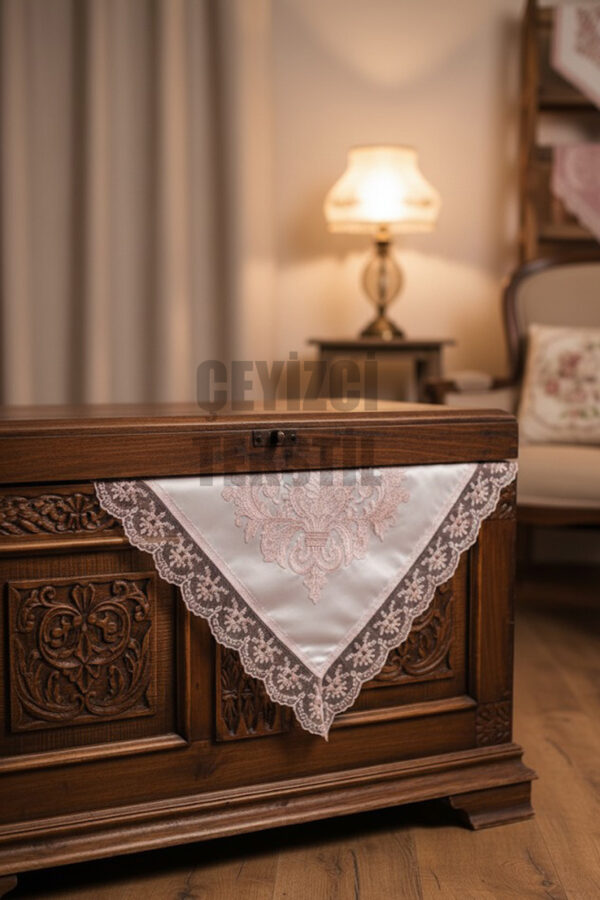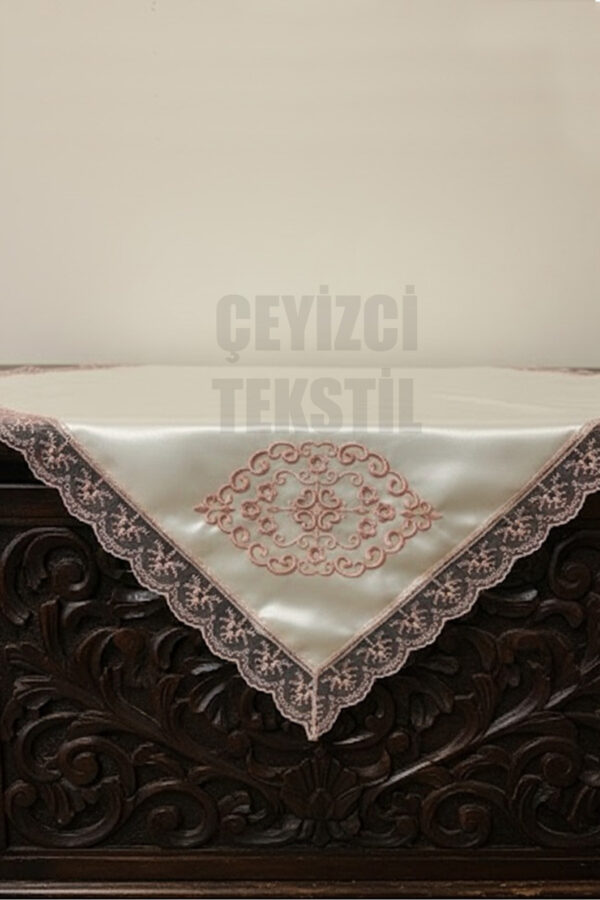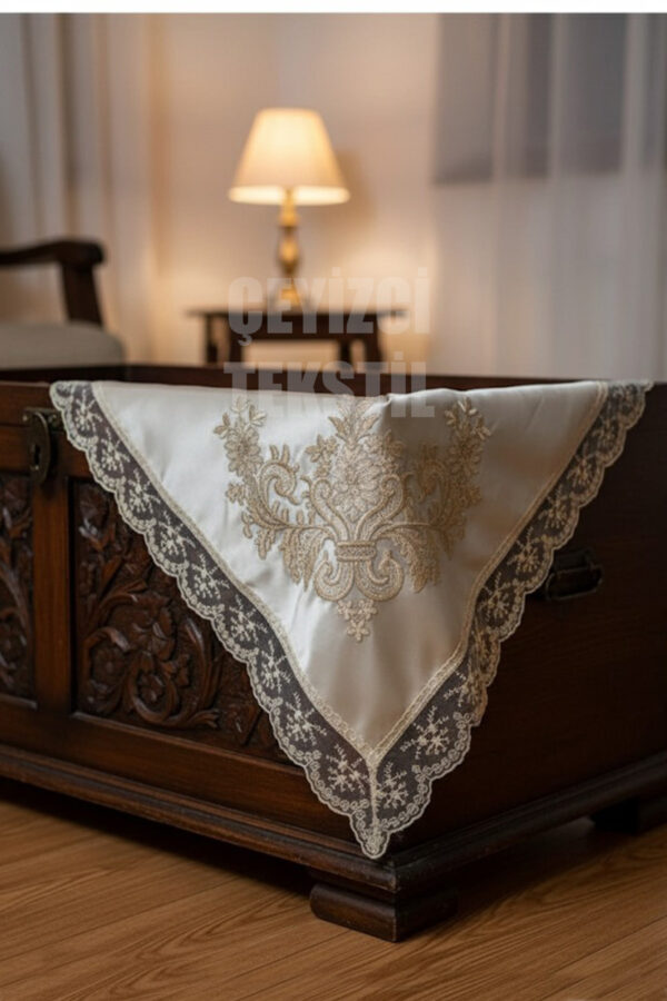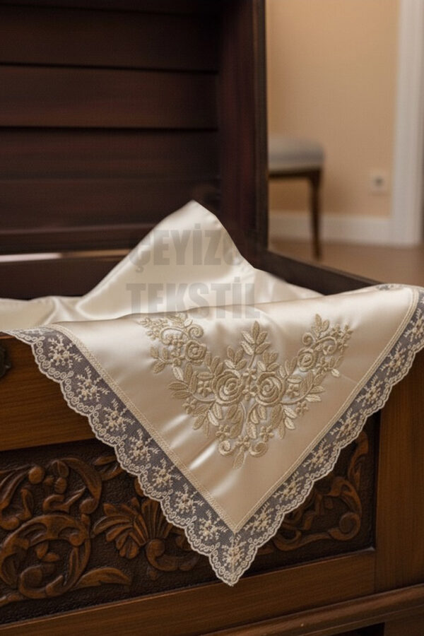 Fransız Güpürlü Işlemeli, Çeyizlik Saten Lüks Bohça, Nişan Bohçası