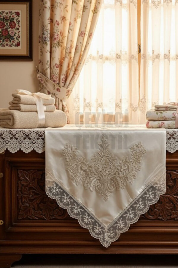 Dantelli Tek Runner, Masa Üzeri Runner – Krem