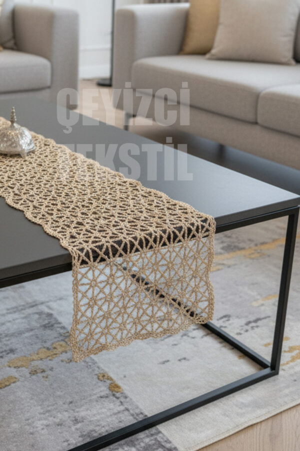 Fransız Dantel Detaylı Tek Runner, Masa Üzerine Runner, Masa Örtüsü Runneri