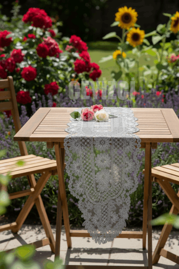 Fransız Dantel Detaylı Tek Runner Masa Örtüsü
