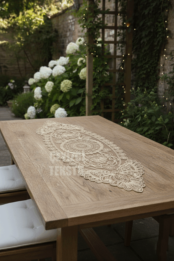 Fransız Dantel Detaylı Tek Runner, Masa Üzerine Runner, Masa Örtüsü Runneri