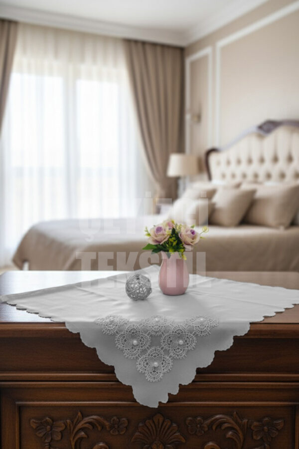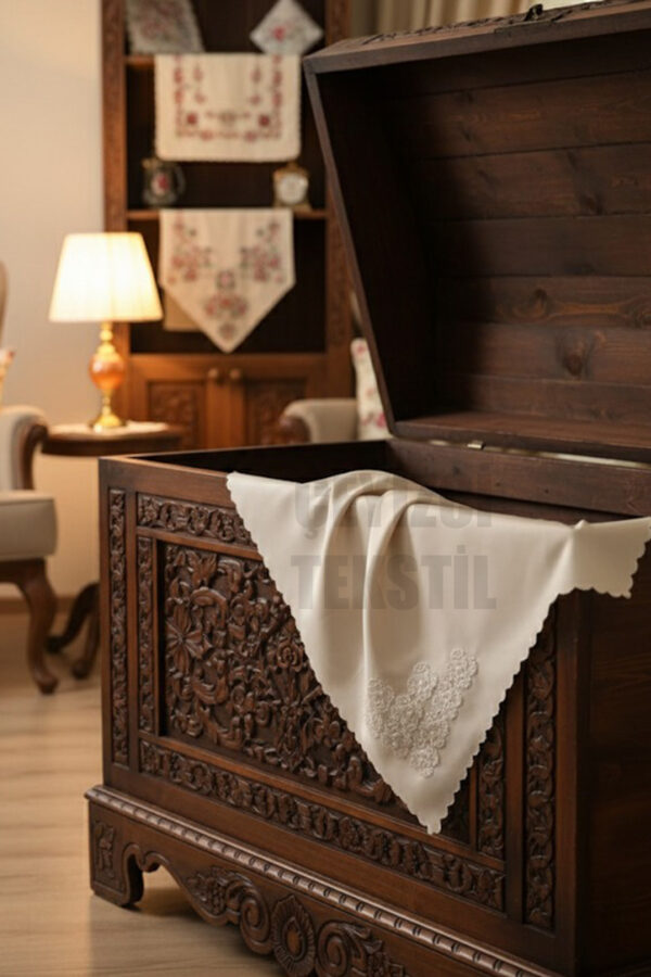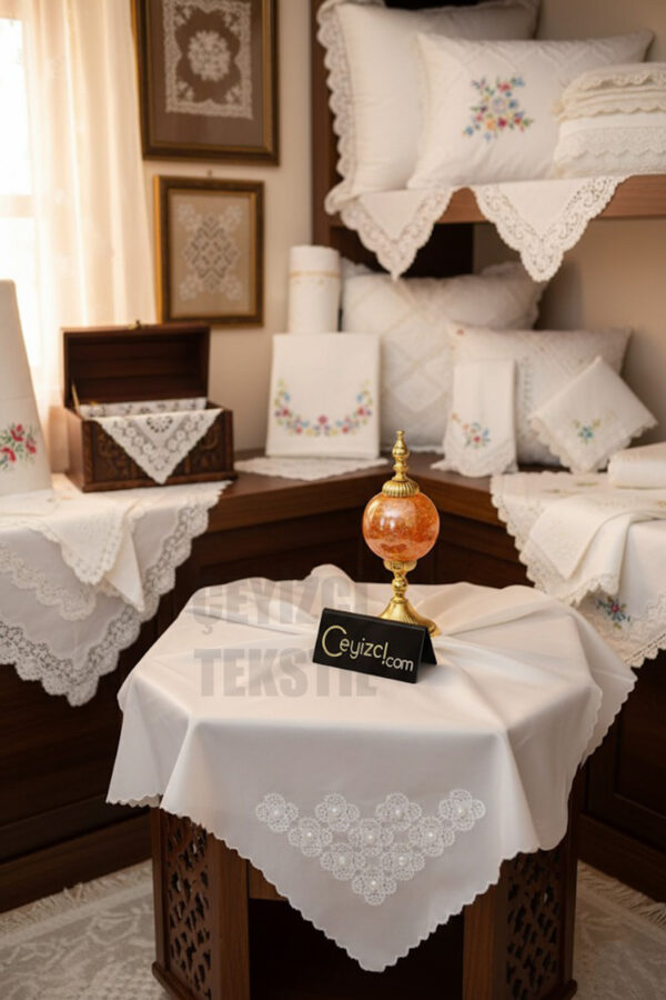Fransız Güpürlü Işlemeli, Çeyizlik Saten Lüks Bohça, Nişan Bohçası