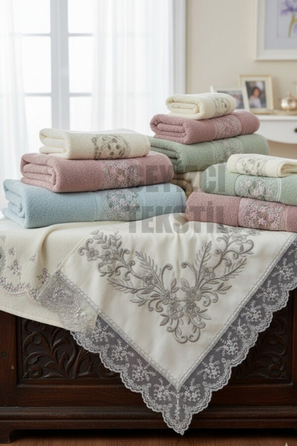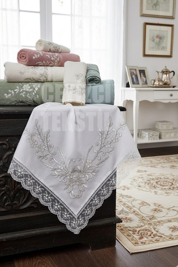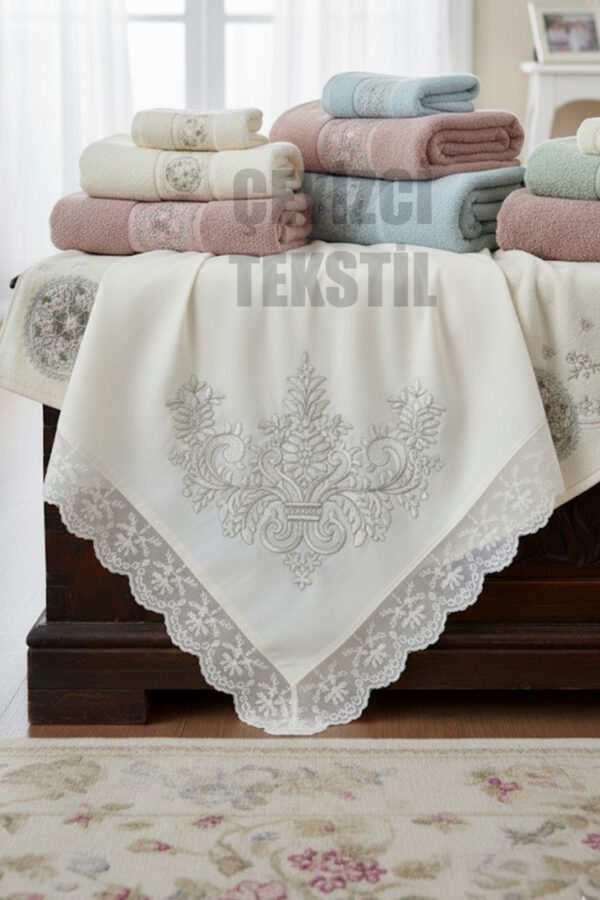 Fransız Güpürlü Işlemeli, Çeyizlik Saten Lüks Bohça, Nişan Bohçası