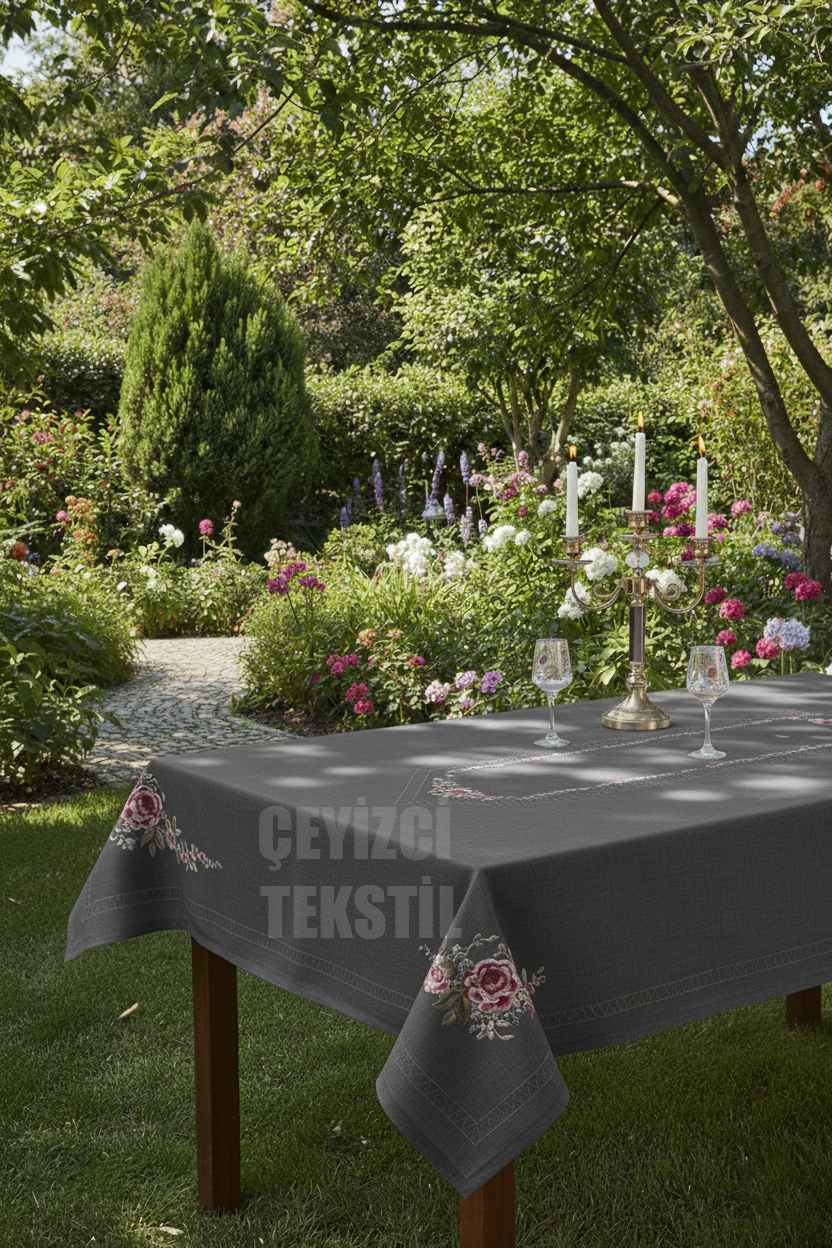 Masa Örtüsü, Dijital Baskılı Kanaviçe Tek Masa Örtüsü, Desenli Leke Tutmaz 160x220cm Masa Örtüsü