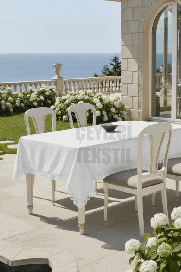 Fransız Güpürlü Leke Tutmaz Tek Masa Örtüsü 150x220cm – Pudra