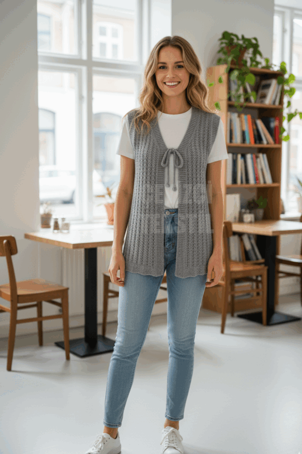 Yumoş Örgü Cepli Kadın Yeleği, Triko Yumuşak Yelek