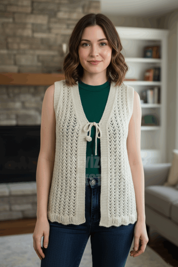 Yelek İpli Çeyizlik Yelek – Gelin Yeleği – Krem
