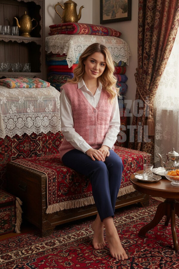 Özel Tasarım İstiridye Yelek, Çeyizlik Yelek Pudra