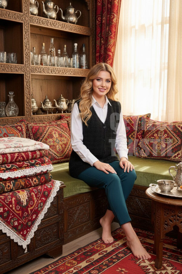 Yelek Düğmeli Çeyizlik Yelek – Anne Yeleği – Gri
